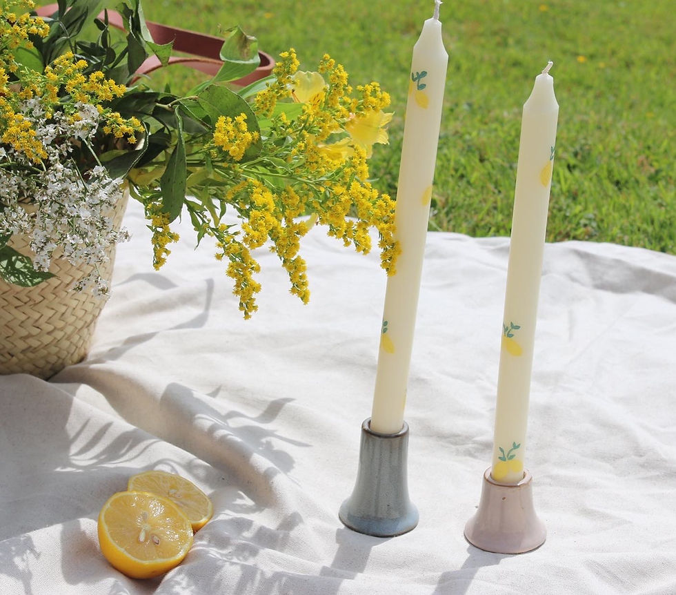 Pair of Lemon Painted Taper Candle